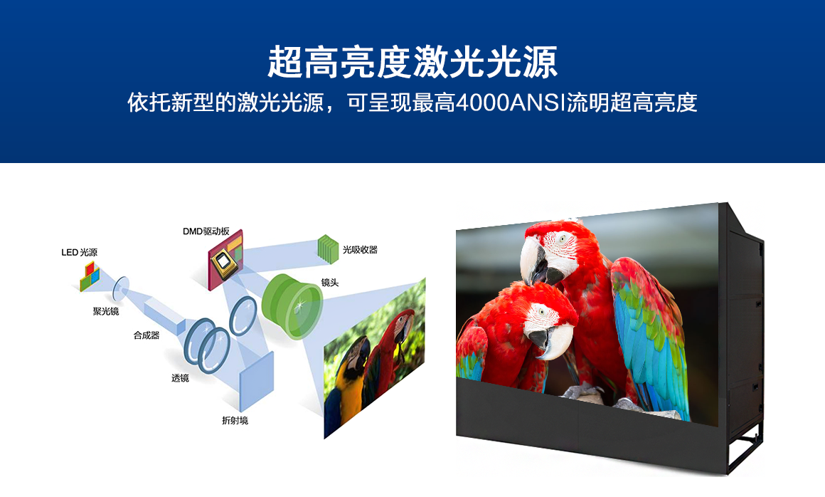 激光光源16:9DLP背投大屏幕產(chǎn)品采用純激光固態(tài)光源設(shè)計、多信道輸入備份設(shè)計,特色的色彩亮度調(diào)整、信號數(shù)據(jù)化傳輸編碼技術(shù)及六色調(diào)整等先進技術(shù),單元內(nèi)置高性能嵌入式拼接處理器,支持全高清信號輸入顯示,具有長壽命、免維護、高亮度、色彩表現(xiàn)力超強、低功耗、綠色環(huán)保等特點,是各類應(yīng)急指揮調(diào)度、生產(chǎn)監(jiān)控、多媒體會商等綜合信息監(jiān)控場所數(shù)字顯示拼接墻系統(tǒng)的理想之選。